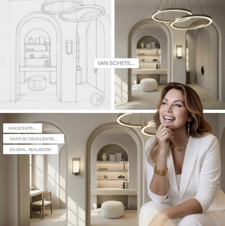 Dit is het moment waarop jouw nieuwe interieur tot leven komt. Ik presenteer je het complete plan en neem je stap voor stap mee door de nieuwe indeling, de gekozen materialen en kleurgebruik. Heb je voor een 3D-visualisatie gekozen? Dan sta je gevoelsmatig al midden in de ruimte. Er is ruimte voor eventuele aanpassingen, zodat het ontwerp volledig aansluit bij jouw verwachtingen. Na goedkeuring van het definitieve plan ontvang je van ons alle bestanden digitaal en op papier.
