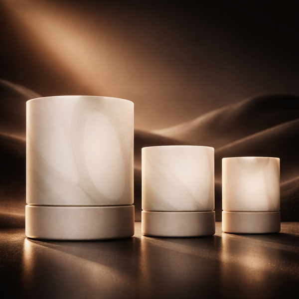 Het windlicht is verkrijgbaar in drie verschillende maten, maak je styling in één keer af door verschillende maten te combineren. Het glaswerk staat op een voet van zandsteen, wat het een luxe uitstraling geeft.